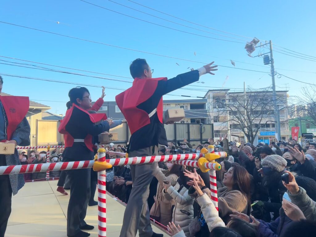 豆をまく際に、小さなお子様からご年配の方まで、皆さまが笑顔で手を広げられている光景を目の当たりにし、地域の方々の繋がりや温かさを改めて実感する大変貴重な機会となりました。